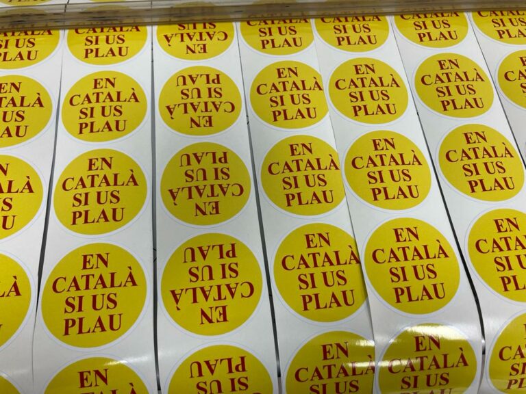 700 adhesius CAT i 300 del “En català, si us plau” repartits entre els ciutadans