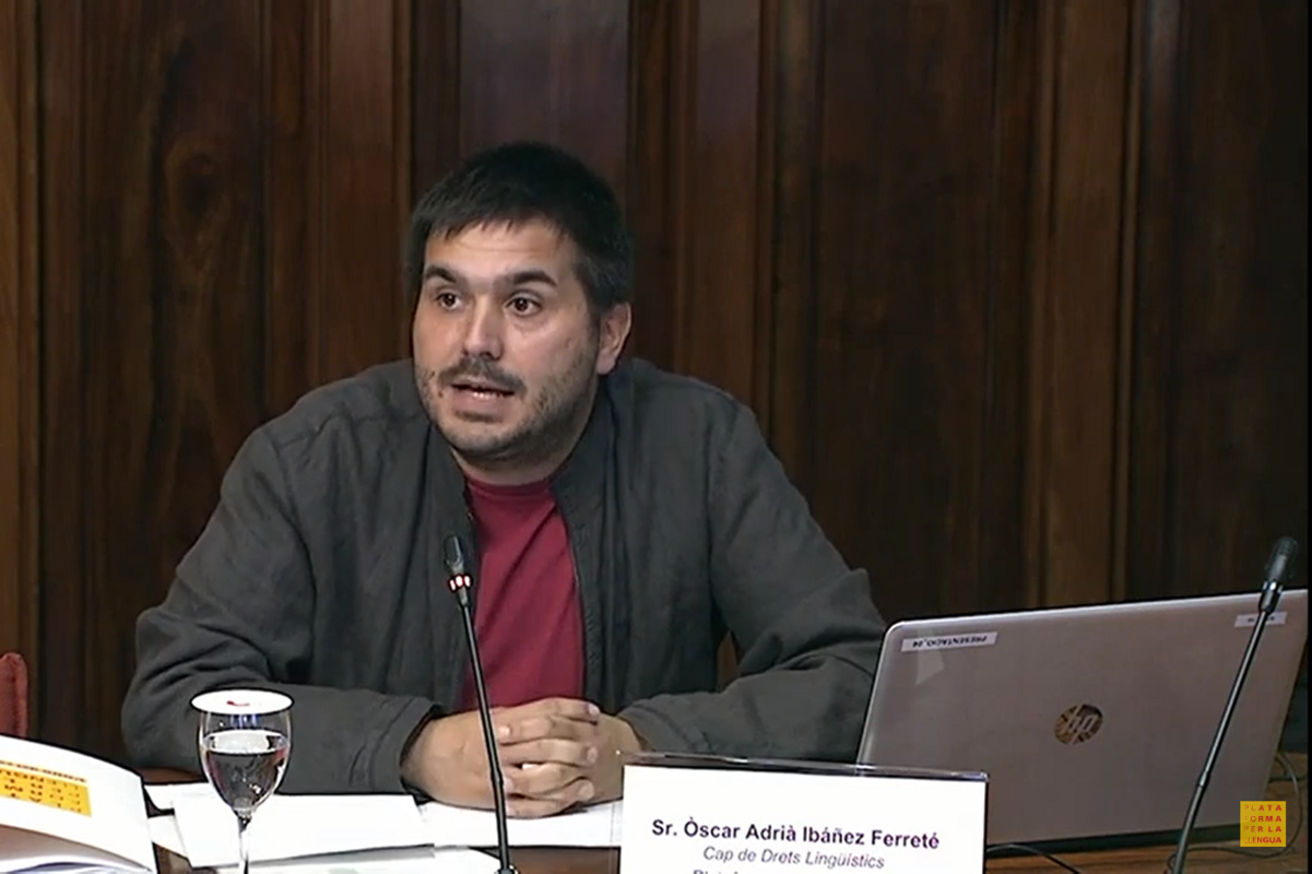Plataforma per la Llengua ha intervingut a la Comissió de Cultura del Parlament per parlar dels drets lingüístics. Òscar-Adrià Ibàñez, cap d’aquesta branca a l’entitat, defensa la necessitat d’impulsar polítiques lingüístiques efectives per promoure el català i garantir la igualtat d’oportunitats per als catalanoparlants.