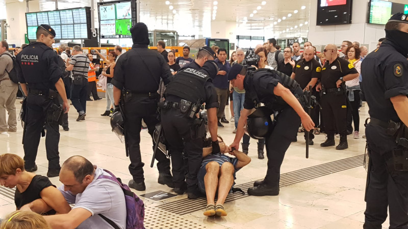 Els Mossos comencen a arrencar manifestants asseguts. Alguns es resisteixen d’altres no. Ara més agents rodegen el @PicnicxRep pic.twitter.com/Hk7pCHv1OK