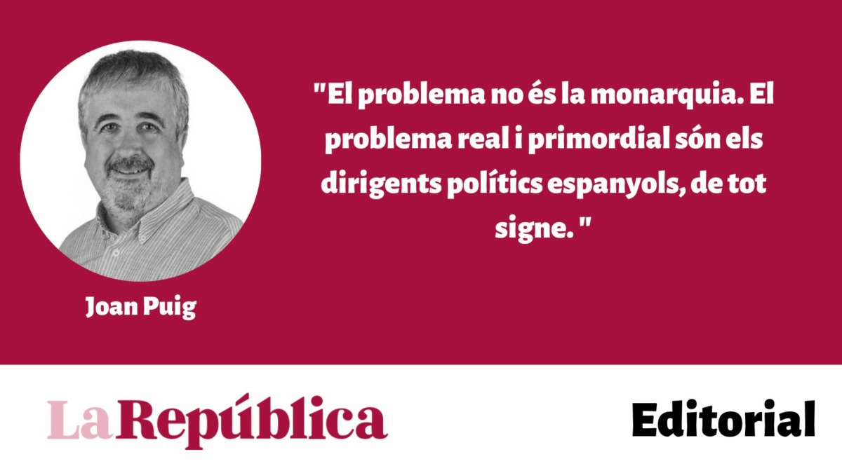 El problema no és la monarquia. Tampoc no ho és la “injustícia” espanyola, impregnada com la reialesa d’arrelament franquista, o fins i tot l’exèrcit espanyol, que prou feines té per dedicar el seu milionari pressupost al manteniment de les armes de darrera generació i evitar que la major part dels diners es perdin en corrupció sistèmica. El problema real i primordial són els dirigents polítics espanyols, de tot signe, que són incapaços de proposar un model atractiu pels milions de ciutadans independentistes que existeixen a l’Estat Espanyol. És tenir poca vista carregar contra el monarca, una de les feines del qual és desviar l’atenció i ser el destinatari dels improductius improperis que emblanquinen i deixen lliures de crítica als governants estatals.
