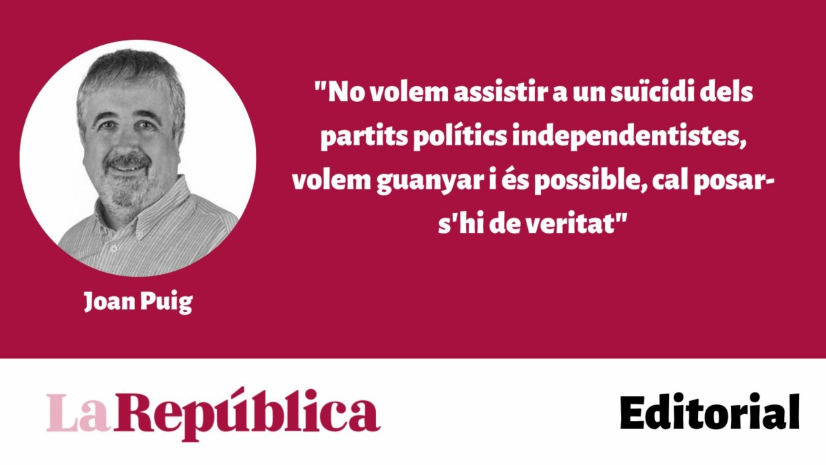 Us toca, líders polítics i civils, desperteu-vos! Espavileu-vos i d’una vegada enraoneu entre tots vosaltres per acordar una sortida digna i guanyadora, que faci real la independència aprovada democràticament i no implementada. No volem assistir a un suïcidi dels partits polítics independentistes, volem guanyar i és possible, cal posar-s’hi de veritat.