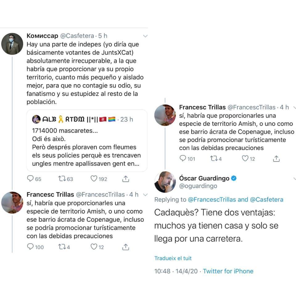 Només hauríeu de seguir el fil al Twitter per veure que l’odi als independentistes és allò que els uneix, des de VOX fins a Podemos.