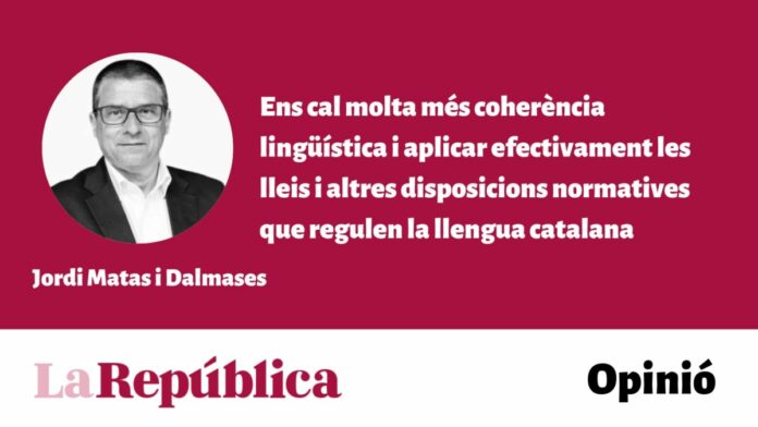 No és normal que aquells que utilitzen només el català amb les entitats financeres, amb el personal mèdic, amb el petit comerç o amb el gran comerç oscil·lin entre un 16% (gran comerç) i un 28% (entitats financeres), i que en tots aquests àmbits el percentatge de catalans que usen exclusivament el castellà estigui molt per sobre i arribin a doblar els que només fan servir el català (com passa amb el personal mèdic, el personal d’un restaurant o bar, o el personal dels grans comerços). El govern de la “normalitat” considera normal que tan sols un 20% dels catalans facin servir únicament el català en el petit comerç i que, en canvi, un terç faci servir exclusivament el castellà en aquest àmbit? I que, en el gran comerç, només un 16% afirmi que només fa servir el català i el 38% admeti que només s’expressa en castellà? Realment s’aplica l’article 32 de la Llei 1/1998, de 7 de gener, de política lingüística, quan diu que «les empreses i els establiments dedicats a la venda de productes o a la prestació de serveis que desenvolupen llur activitat a Catalunya han d’estar en condicions de poder atendre els consumidors i consumidores quan s’expressin en qualsevol de les llengües oficials a Catalunya», o que «la senyalització i els cartells d’informació general de caràcter fix i els documents d’oferta de serveis per a les persones usuàries i consumidores dels establiments oberts al públic han d’ésser redactats, almenys, en català»? La resposta és: rotundament no. No s’aplica ni aquest article ni molts altres, ni aquesta llei ni altres disposicions normatives que regulen la llengua catalana. Ens cal molta més coherència lingüística.