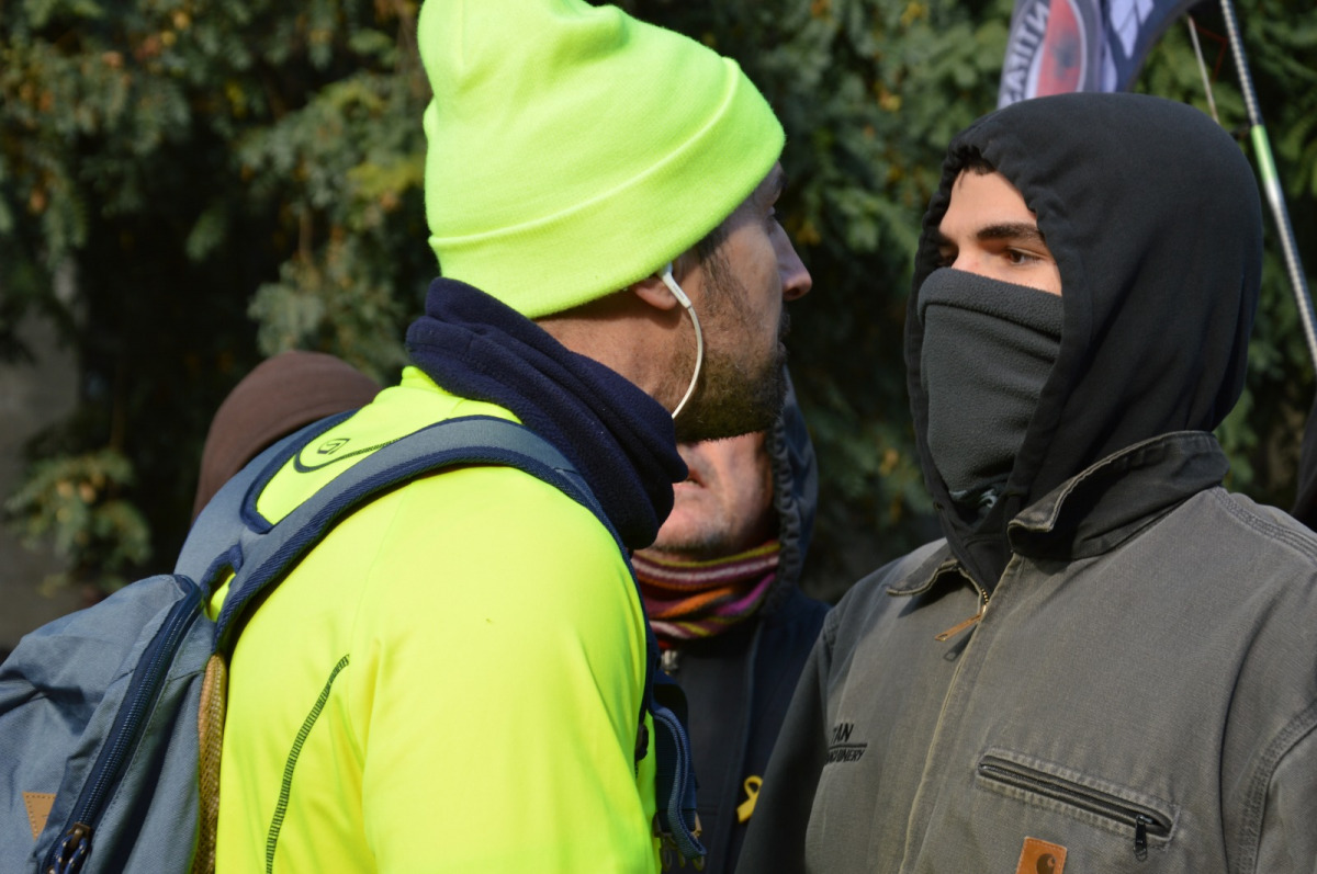 I dic que els CDRs escolten i dialoguen perquè he viscut en primera persona el debat que manté l’independentisme a peu de carrer: si lliri a la mà o accions més contundents (sempre no-violentes). Al migdia, entre la Barceloneta i Pla de Palau, els CDRs han tombat containers i s’han dirigit cap al cordó policial, la seva intenció era bloquejar la sortida dels ministres. De seguida altres manifestants amb la cara descoberta, que potser també formen part d’un CDR, han fet una barrera humana davant els CDRs per a evitar la confrontació amb els Mossos.