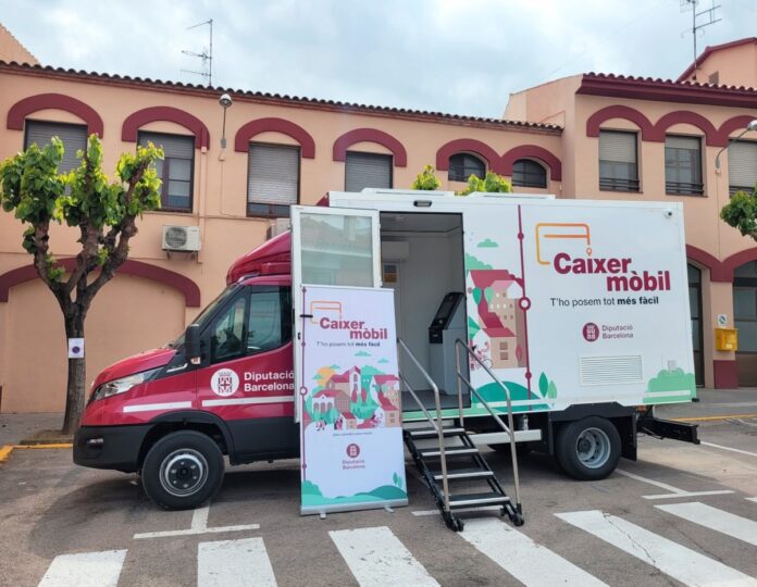 La Diputació de Barcelona va posar en marxa el passat mes d’abril el servei de caixer mòbil per a aquelles persones que viuen en municipis de fins a 5.000 habitants on no hi ha ni oficina bancària ni caixer automàtic. Des d’aleshores, 96 municipis i 58.000 persones poden treure diners en efectiu amb qualsevol targeta de dèbit, de crèdit o de prepagament, amb independència de l’entitat amb què tinguin el seu compte bancari. A través de rutes programades, el caixer mòbil recorre les poblacions amb la freqüència d’una o dues vegades al mes, i s’hi està aturat uns 20 minuts aproximadament per oferir el servei.