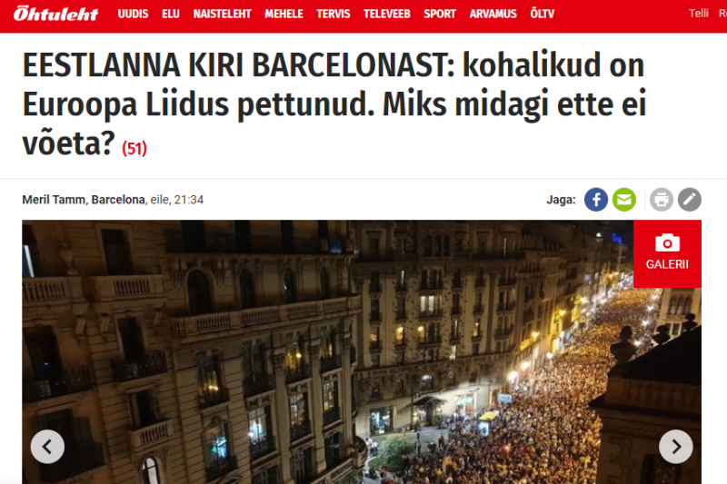 Un dels diaris amb més tirada d’Estònia, Ohtuleht, ha publicat avui un article d’una noia del país bàltic que resideix a Catalunya.